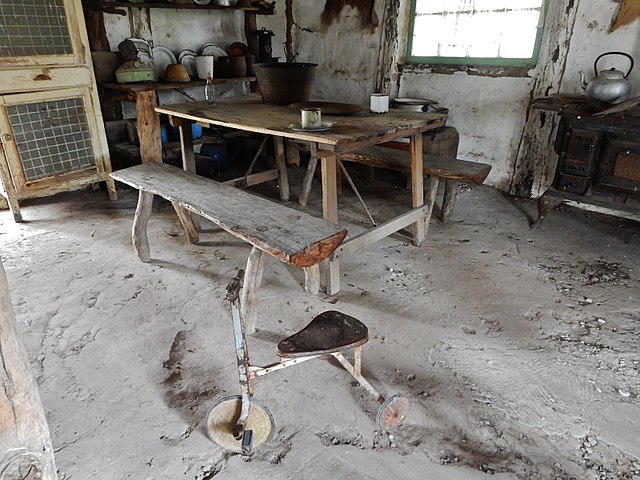 First, a laterite layer is applied on a flat, compacted foundation, with manual compaction helping keep the laterite layer level and strong. Next, a screed layer, which is made of sand and clay is applied and trowelled flat. The floor is then sealed by a layer of drying oil that polymerizes (plasticizes) as it dries to form a plastic-like resin on the floor.