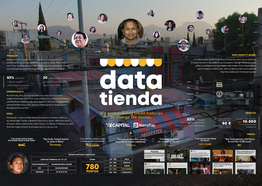 Since the platform was launched, more than 10,300 women have registered to build their credit history and Data Tienda has captured data from more than 50,000 business owners across Mexico. More than 2,300 women have received microloans for their businesses and study plans. Data Tienda is helping rebuild the credit histories of 35 million low income women in Mexico.