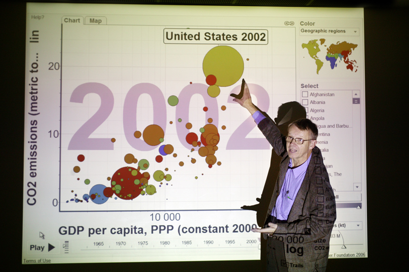I used several of his energizing presentations in a class I taught at a Canadian university on international field work. He showed trends over the long term, transforming development statistics into moving bubbles and flowing curves that make global trends clear, intuitive and even playful. His legendary presentations usually attracted standing ovations.
