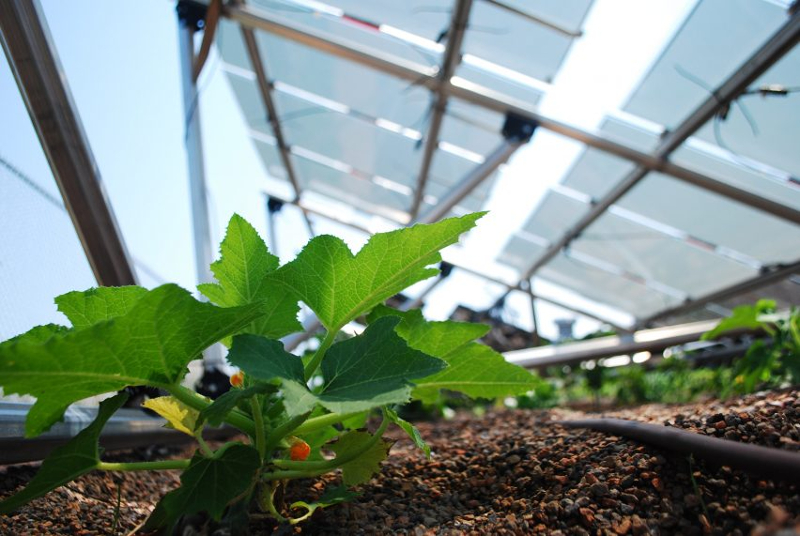 Agrivoltaics sites solar panels so they provide cover for crops grown underneath them, even as they generate power. Crop yields increase, water and fertilizer requirements decrease, and farmers get additional income outside the growing season by selling solar electricity.