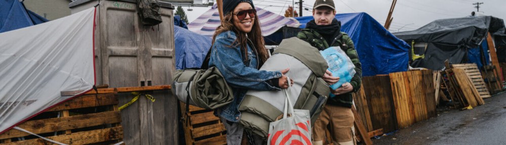 In the winter of 2023, Sheltersuit handed out 750 Shelterbags in the US Pacific NorthWest in partnership with Greater Good Northwest, Rose Haven, and Transition Projects. These suits came all the way from the social factory in South Africa where they were produced. “I really believe in the work Sheltersuit is doing, employing people who otherwise might not have a chance to access these opportunities,” says Eboni Brown, director of Greater Good Northwest in Portland, who first contacted Sheltersuit in 2019. “I believe in Bas’ mission and I understand where he’s coming from.”