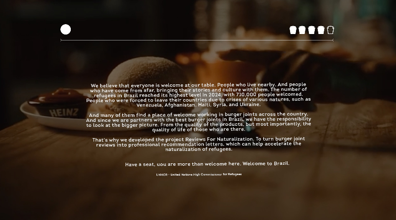 The aim of ‘Reviews For Naturalization‘ is to help refugees in Brazil on their path to becoming naturalized citizens by encouraging customers at burger joints nationwide to leave positive reviews for immigrant staff, turning everyday feedback into recommendations for naturalization applications.