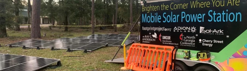 A coalition of Southeastern U.S.-based partners unveiled the solar microgrid trailer in late 2023, marking a milestone in disaster response technology in the region. The Ray C. Anderson Foundation awarded a grant to The Footprint Project to construct the trailer. Cherry Street Energy donated solar panels and technical assistance. The trailer was constructed at Adion Solar in Madison, Georgia with assistance from Sol-Ark, an energy storage company. The United Methodist Committee on Relief and the North Georgia Conference of The United Methodist Church manage, operate and deploy the trailer.